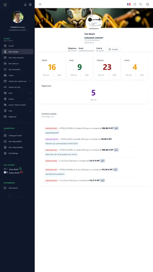 Application réservée aux professionnels de la désinsectisation. Une application qui permet au technicien d'avoir un outil de gestion pour tout ce qui est lié à la destruction de nids de guêpes et nid de frelons. Need's Protect, nous sommes des apporteurs d'affaire dans la désinsectisation, n'hésitez pas à nous contacter pour plus de renseignements et rejoindre notre réseau d'indépendants. Nous vous apportons des rendez-vous qualifiés. Nous regroupons les indépendants de la désinsectisation en leur envoyant des rendez-vous qualifiés. L'application permet également d'avoir un logiciel de facturation, une gestion de votre planning, une gestion de vos clients et surtout la gestion totale de vos rendez-vous géo localisé.