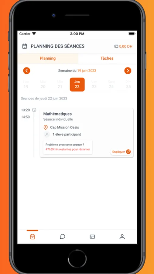 - A nos familles de suivre la progression des étudiants inscrits, de leur planning, de leur solde ainsi que communiquer avec le corps administratif et avec les enseignants. Il est également possible de procéder à l'inscription : paiement directement sur l'application. Des fonctionnalités avancées comme les retours satisfaction suite à des cours avec les enseignants permettent d'améliorer la qualité de Cap Mission,