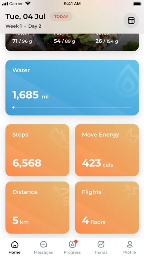 The app integrates with Apple Health to show your daily activity - distance, steps, active energy, and flights to help you better achieve your goals.