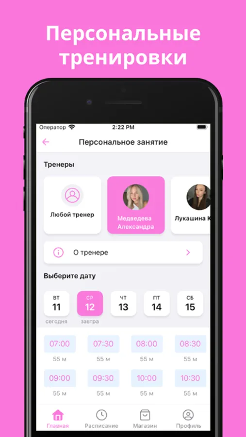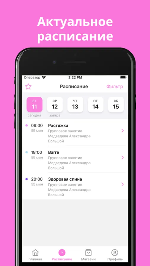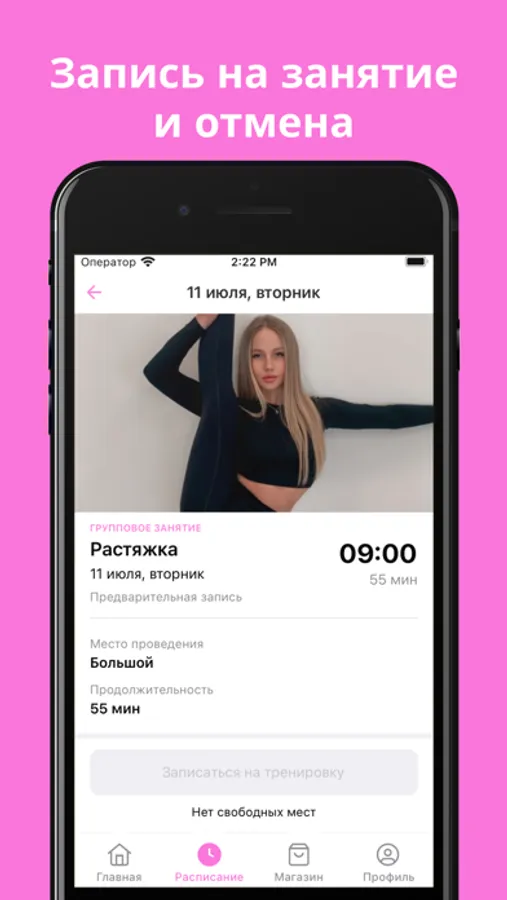 Записывайся на занятия, узнавай о новых тренировках и акциях студии через приложение.