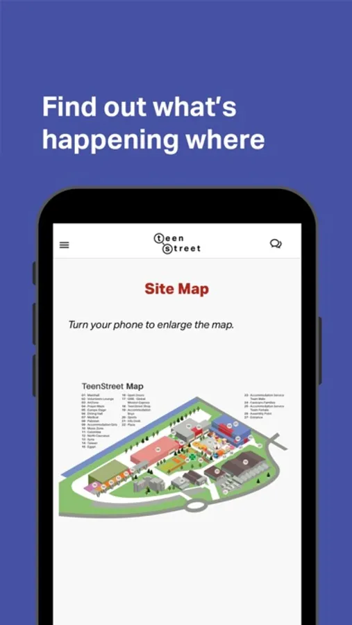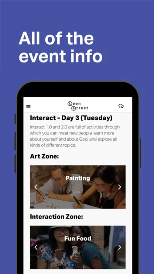 This app is your companion throughout the TeenStreet event so you know what's going on, where, and when!