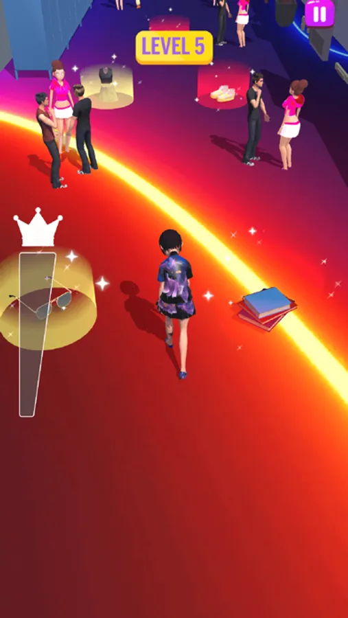 each level is a different theme, choosing dress while walking the catwalk, test your reaction speed and aesthetic ability. After choosing your dress, collecting cosmetics, lipsticks, glasses, new shoes, new clothes, and changing characters in the game. girls attract and follow you, The goal is to fill a bar with popular levels and pass each level, which eventually leads to meeting a charming boy.