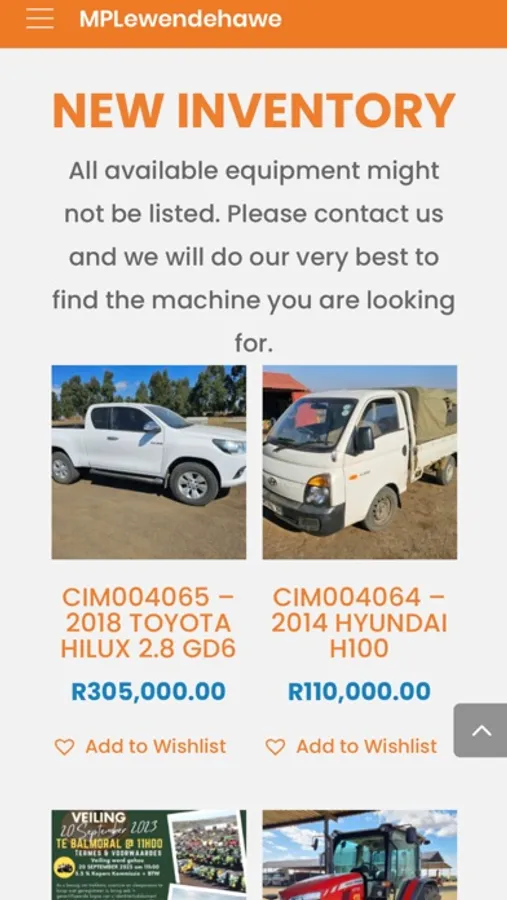 Our products and services include: Tractors, Planters, Harvesters, Irrigation Equipment, Trucks, Trailers, Auctions, Farms and more. Specializing in selling and buying second hand equipment related to agriculture and transportation.