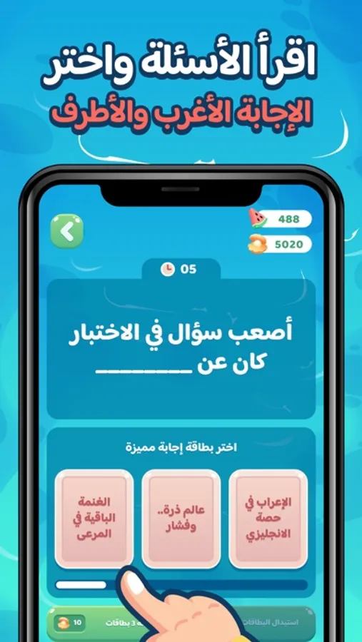 اللعبة اللي راح تضمن لك لحظات لا تنسى من الضحك! والأحلى إذا لعبتها مع أصحابك! فكرة اللعبة جدا سهلة جواب على السؤال الظاهر ببطاقة إجابة شاطحه أو مضحكة أو غريبة اللي يعجبك طالما أنها راح تعجب بقية اللاعبين!