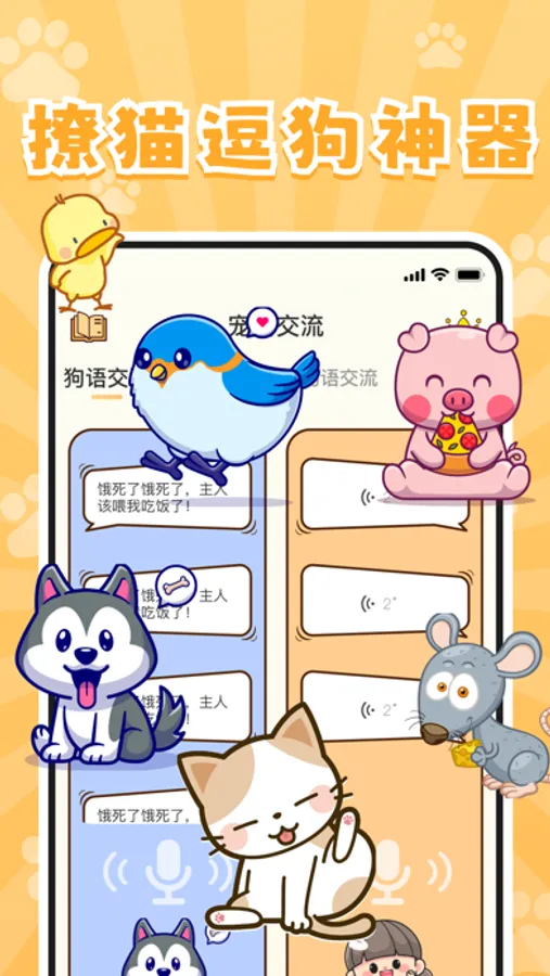 【人与宠物语言转换】把你对你狗狗或者猫咪想说的话转换成它们能听懂的语言;把狗狗猫咪的叫声转换成人类可以理解的语言;