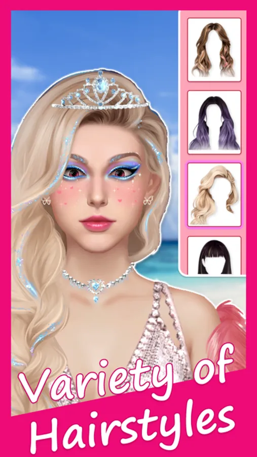 Beauty makeup games & fashion games are divided into three parts: skincare, make-up, and dress up. You can choose the right lipstick, liquid foundation, mascara, eye contact lenses, nail polish, and other cosmetics in the luxurious indoor makeup room to do makeup for your clients. Or choose from tons of fabulous clothing, gorgeous decorations to create new perfect looks for your clients!, glamorous hairstyles, shiny manicures, and eye-catching makeup