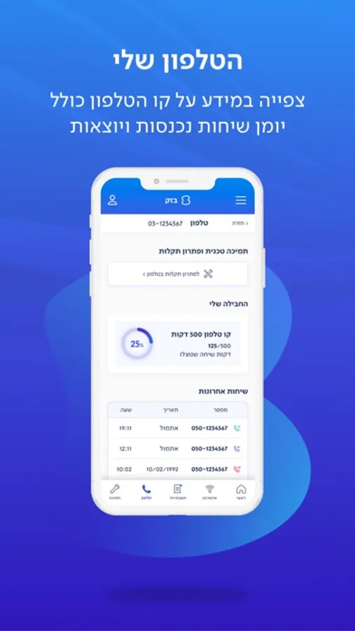 • צפייה במידע על קו הטלפון, כולל יומן שיחות נכנסות ויוצאות