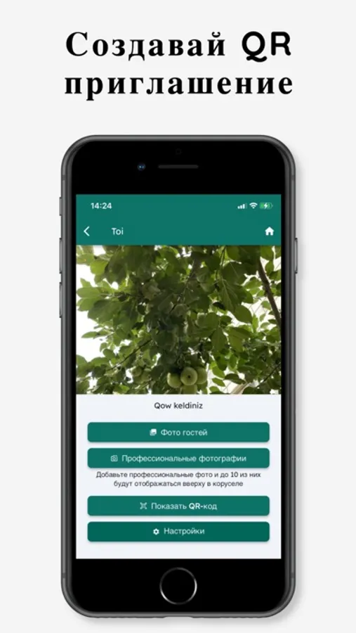 Хозяин мероприятия создает QR код, который будет сканирован гостями для общего но частного обмена фотографиями!