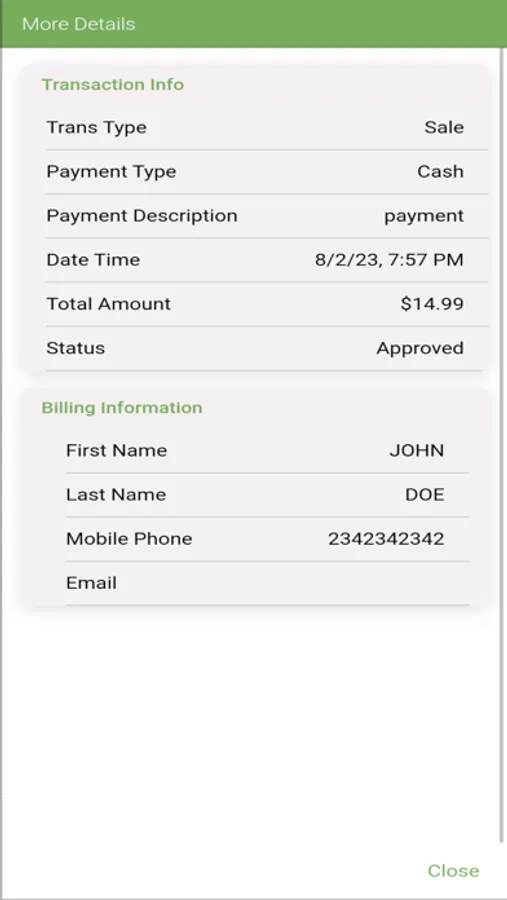 You can track all sales activities within the app: approved transactions, declined, reasons for the declined, and historical transaction activity and quickly enabled you to refund or void transactions.