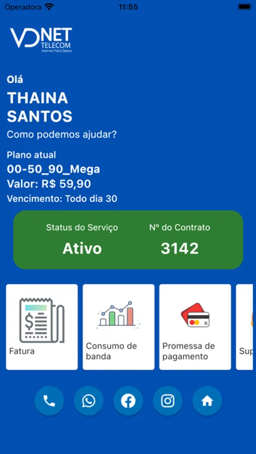 No app da Central do Assinante da Vdnet Telecom você pode: