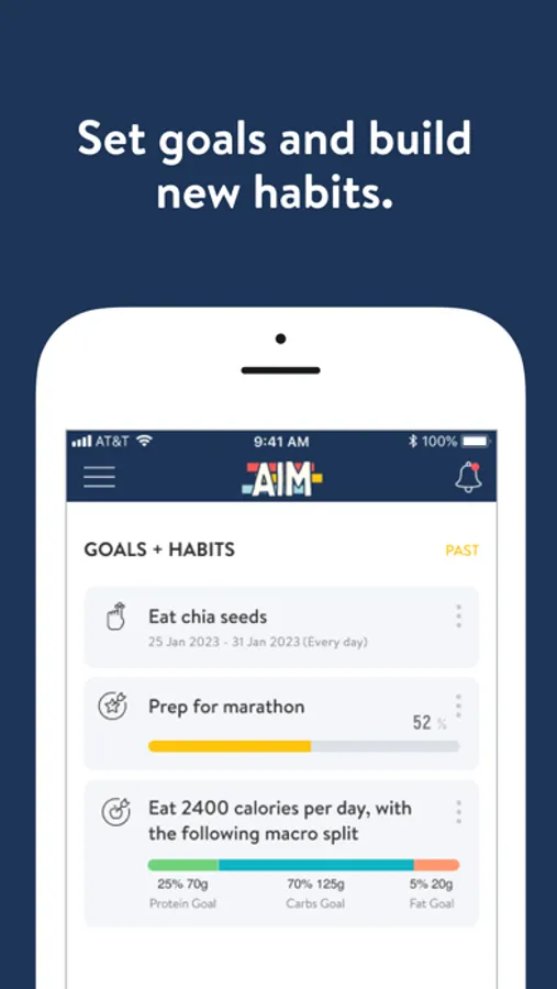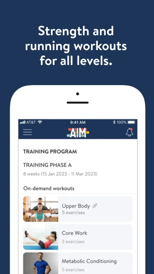 The AIM app was designed to help you reach your goals in running, fitness, and life. The AIM programs each provide a variety of features that best fit your unique needs and goals - so you can AIM for more no matter which season you're in.