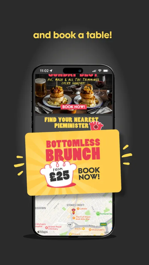 You can also use the app to find your closest Pieminister, easily Book a Table, treat yourself to a Bottomless Brunch, or book our Sunday Best, delicious!