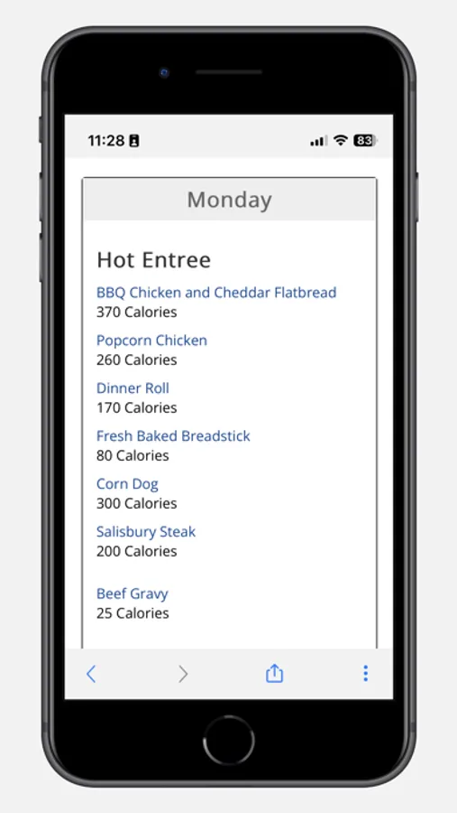 - Our interactive menus let you see what’s being served for breakfast and lunch at your child's school each day. Tap on each item to find full nutrition info and ingredients. You can also filter the menu to find vegetarian and vegan options, avoid allergens, and much more.