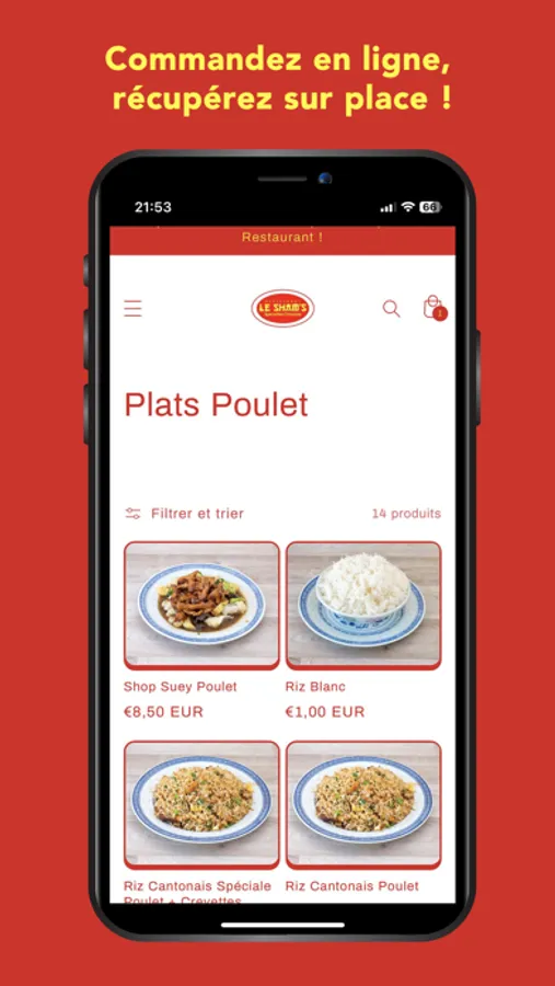 Vivez l'expérience unique de la cuisine chinoise avec Sham's Click and Collect ! Passez votre commande en quelques secondes et récupérez vos plats préférés directement au restaurant. Profitez de nos délicieuses spécialités sans attendre, grâce à notre service rapide et pratique. Que vous ayez envie d'un savoureux Chop Suey ou d'un Bol Renversé exotique, Sham's est là pour satisfaire toutes vos envies. Téléchargez dès maintenant l'application et savourez votre repas favori à portée de clic !