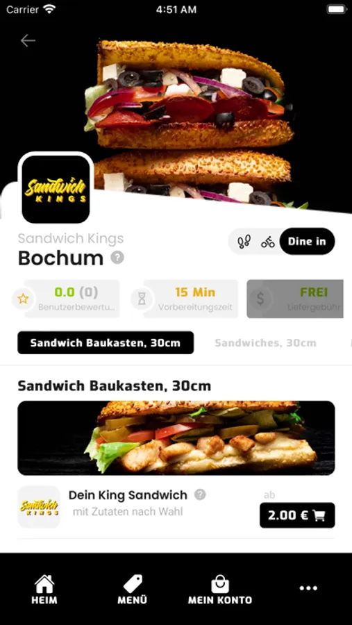 Willkommen bei "Sandwich Kings" in ihrer Stadt! Bei uns werden Sandwich-Träume wahr. Unsere Köche zaubern köstliche Kreationen – von klassisch bis kreativ. Bestellen Sie jetzt bequem über unsere App oder den Online-Shop und sichern Sie sich einen exklusiven Rabatt von bis zu 10 % auf Ihre Erstbestellung. Guten Appetit wünscht das Team von "Sandwich Kings" in "Bochum".