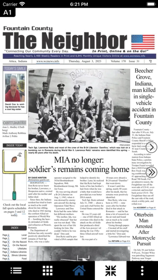 WCI News 2-in-1 app features a live news feed and breaking news mobile alerts, keeping you up to date in real time, along with convenient access to the print replica e-editions of The Fountain County Neighbor and the Williamsport Review Republican.