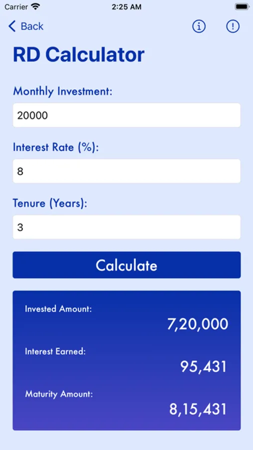 3. RD Calculator: Evaluate the maturity amount for recurring deposits based on interest rates and tenure. Determine the monthly deposit amount, interest rate, and tenure to understand the potential returns from your recurring deposits.