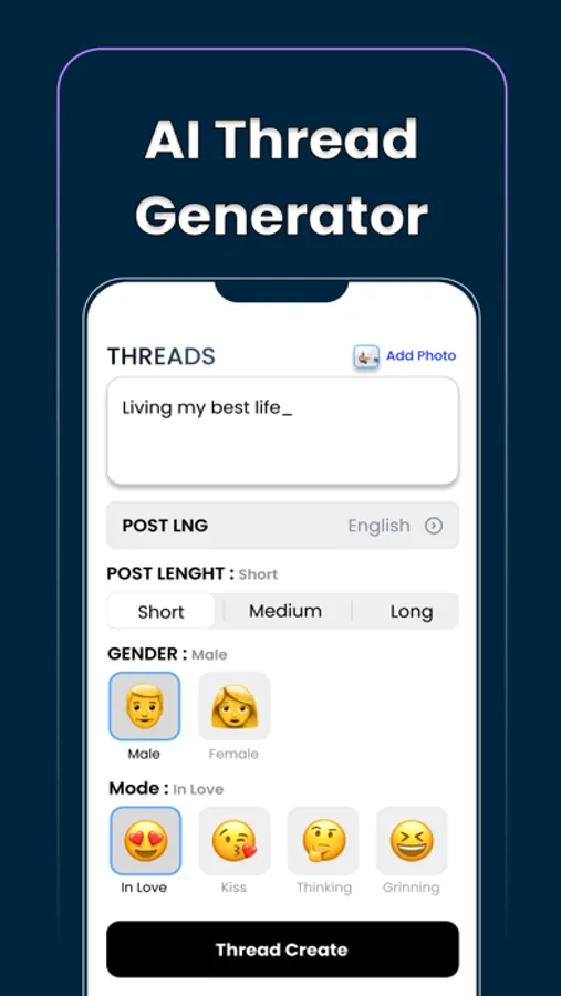 • Image-Driven Post Generation: Let your images inspire your posts! With Thread Maker, you can generate posts and captions that are perfectly tailored to each image. Our app analyzes the visual content and generates contextually relevant text, ensuring your thread tell a compelling story.