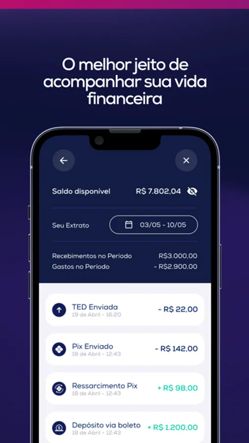 Realize movimentações financeiras, com diversas funcionalidades desenvolvidas para facilitar o seu dia-a-dia, tudo em um só lugar. Aproveite o cartão pré-pago bandeirado, sem rico de pagar juros e sem comprovação de renda, com total autonomia para definir seu limite de gastos.