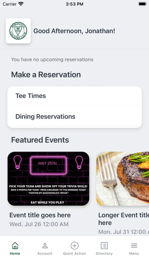 Mobile App for use by members of the Burlington County Country Club.