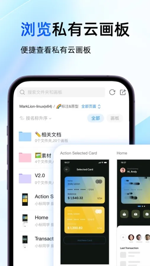 实时预览Figma/Sketch/Adobe XD设计稿,全屏浏览标记狮私有云上的画板,查看私有云画板交互演示