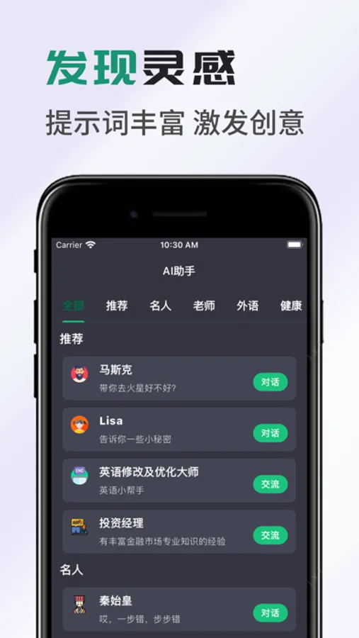 这是一个革命性的人工智能软件,可以将对话转变为娱乐和富有趣味的体验。 您可以使用AI模型来聊天,创作,写论文,诗词歌赋,制作学习计划及工作总结,也能够书写朋友圈文案,绘画模仿人类的聊天方式回复和聊天。它可以帮助您解决工作、生活中的难题。