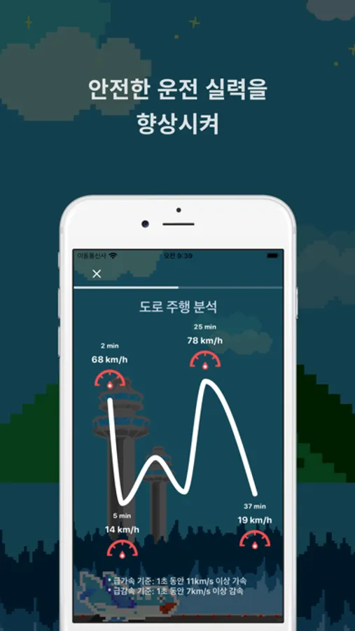 Drive Pal은 운전자의 속력 변화를 확인하고 급가속과 급감속을 판단해요.