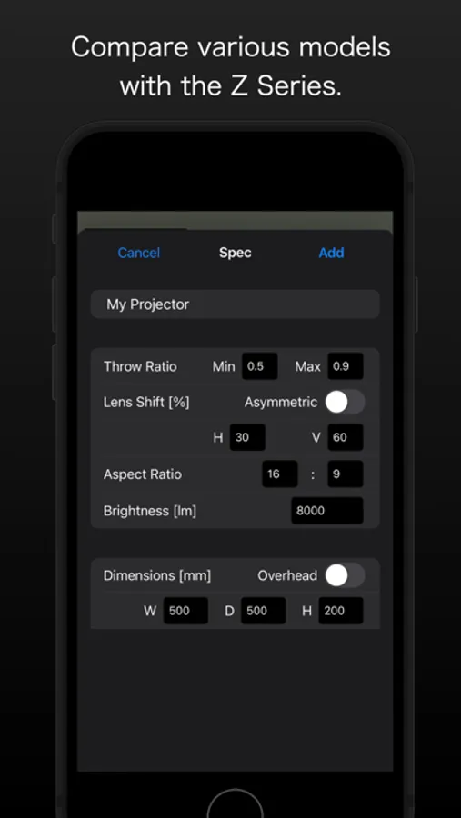 You can visualize the relationship between the projector installation position and the projection size, and explore the possibilities of spatial effects created by Z-projectors.