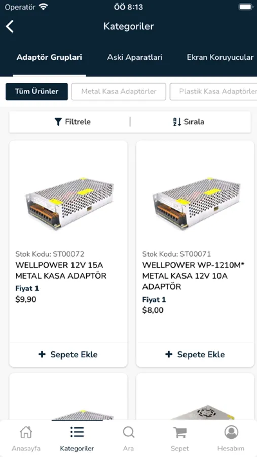* Ürün kategorilerinde filtreleme yapabilirsiniz