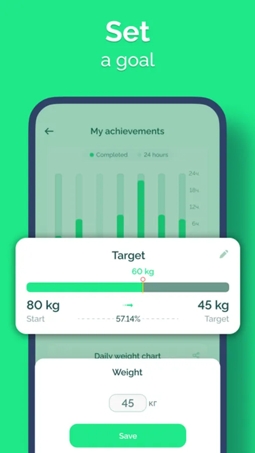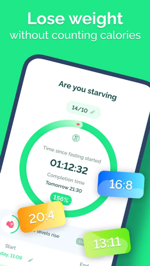 The fasting tracker will help you lose weight without counting calories, just mark the beginning and end of fast.