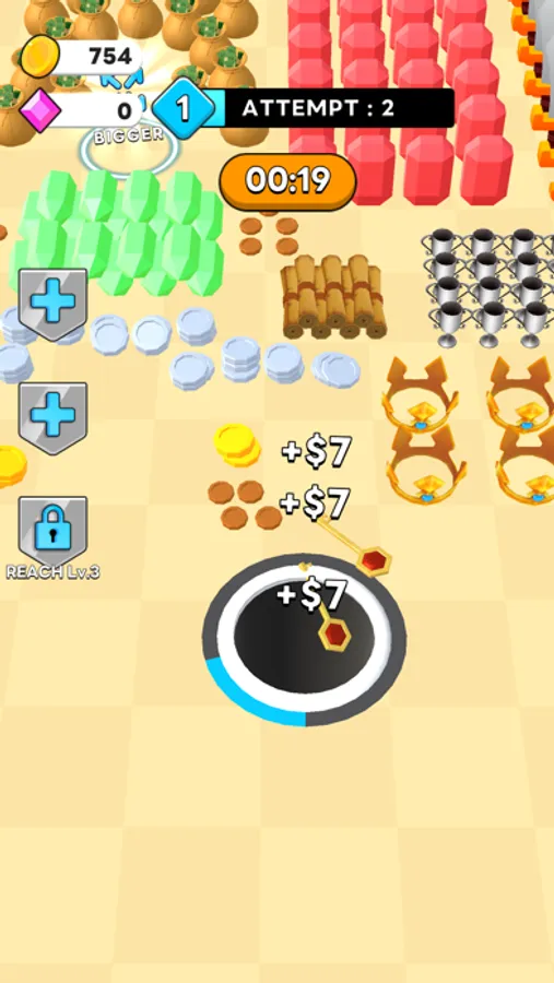 In MoneyHole!, you can enjoy the pleasure of collecting more and more money and try to purchase expensive items with the collected money!