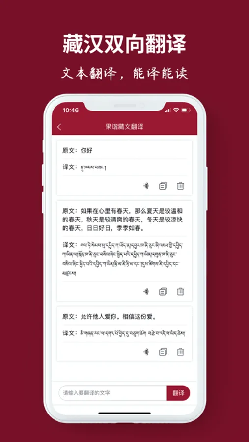 1、藏汉翻译:藏汉文字双向翻译,藏区语库,同时支持藏英翻译