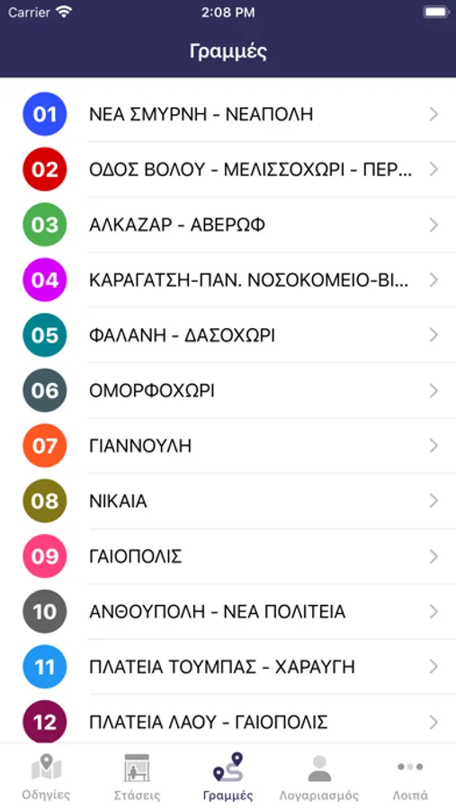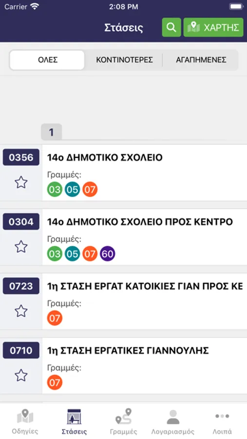 Επιλέξτε μια διαδρομή για να δείτε την σειρά των στάσεων.