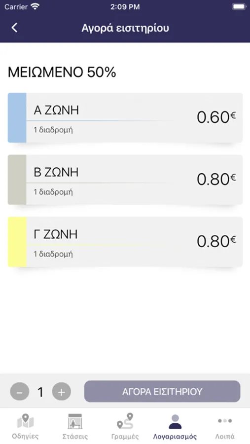 Δημιουργήστε τον λογαριασμό σας, αγοράστε και αποθηκεύστε με ευκολία τα κόμιστρα που αντιστοιχούν στον τύπο επιβάτη σας.