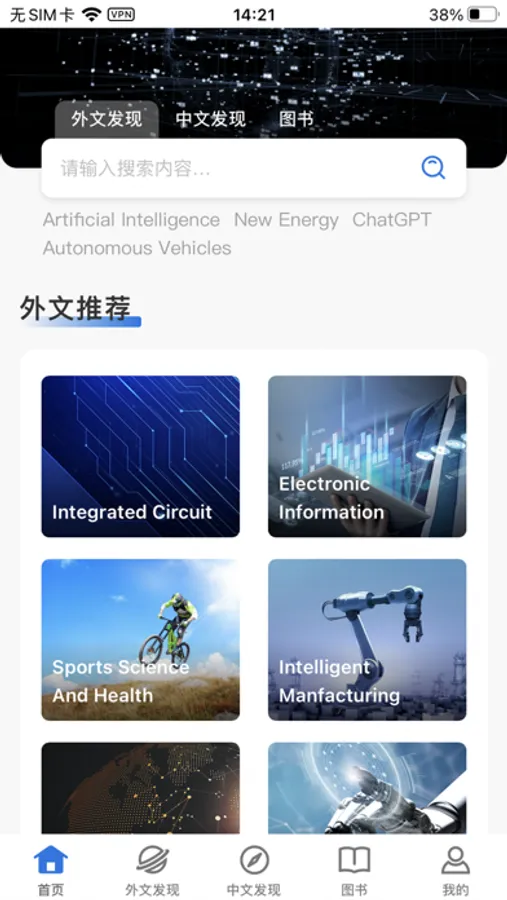 上海临港科技智慧图书馆云平台为会员提供外文发现、中文发现、数字图书查阅、全文传递等查询服务,目前已接入Nature、EBSCO、万方等海内外权威学术期刊数据库。