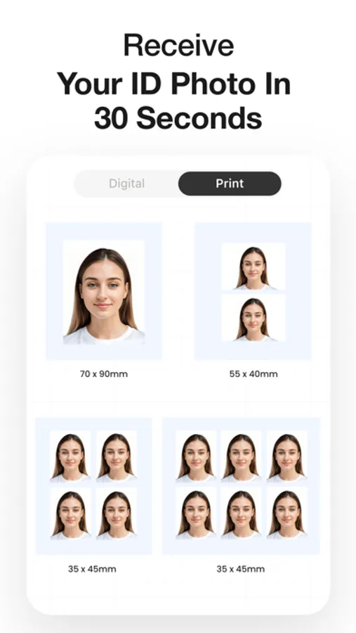 SnapID offers a collage of options, allowing you to create a photogrid of ID photos that adhere to the specifications and standards of different countries. The available settings are designed to accommodate passports, student IDs, visas, and exam requirements, ensuring versatility and convenience.