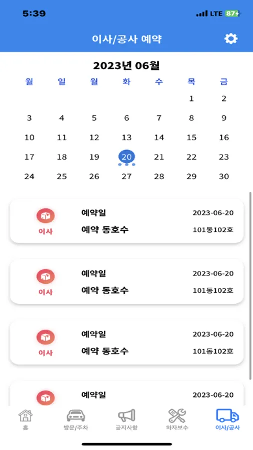 - 입주민의 이사 스케줄을 확인할 수 있습니다.
