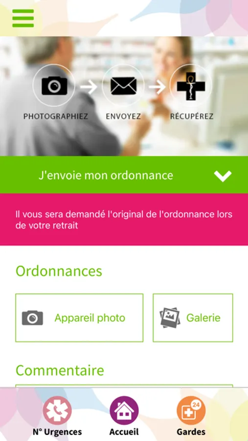 - Suivre toutes les actualités de l'officine grâce aux notifications pushs.