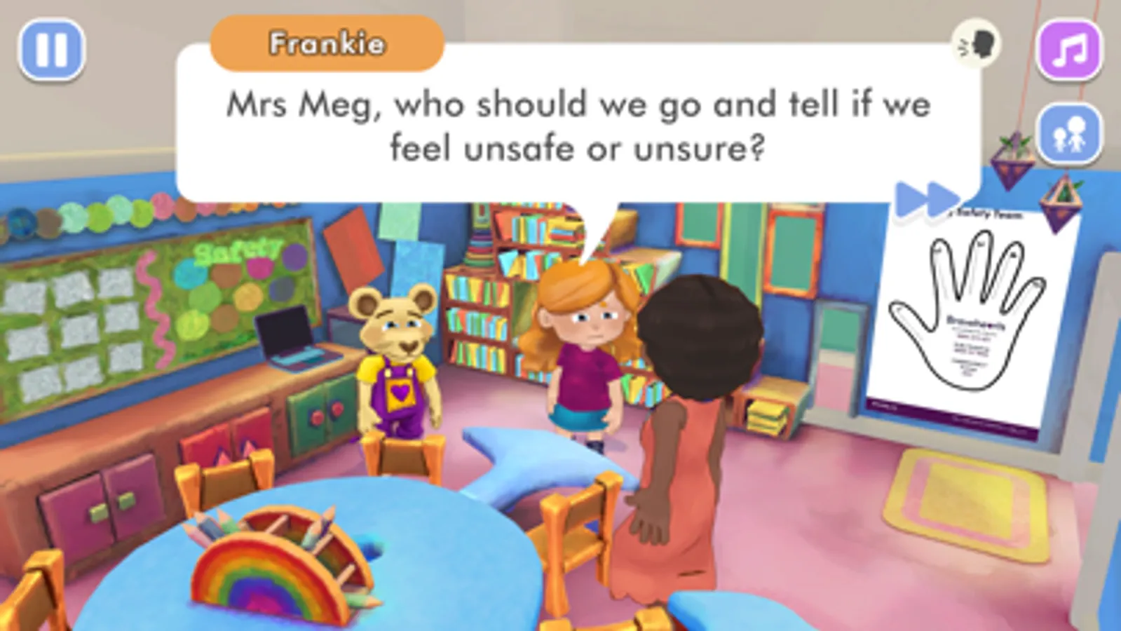 - Frankie learns how to recognise safe and unsafe feelings.