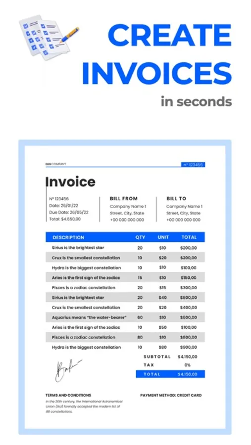 Create signature with ease and add signature to invoice