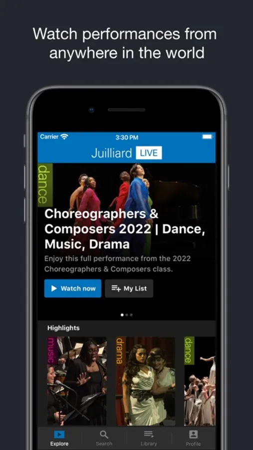 Experience Juilliard performances from anywhere in the world! Juilliard’s official app provides no-cost livestreamed and on-demand programs from music, dance, drama, and preparatory division productions. Register for free today. Also available to download on Apple iOS, Apple TV.