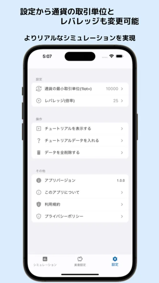 ※チュートリアルは設定タブよりいつでも再確認することができます。