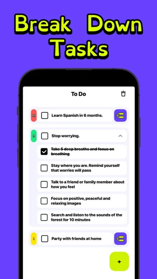 Meet our new AI Chatbot & Task Assistant which is great for asking anything and splitting your tasks. AI powered chatbot will help you to communicate, learn, and achieve your goals. Detailed subtasks are created by touching one button without your participation. A specially trained artificial intelligence model does this for you. Just describe the task that is in front of you in text or voice.