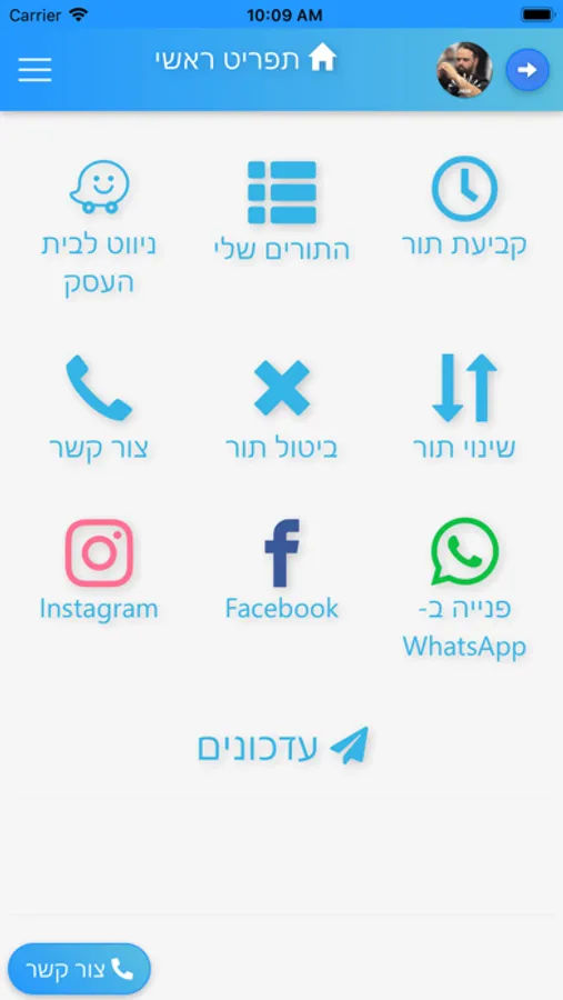 באפליקציה אפשר לקבוע תור, לנווט באמצעות Waze ולפנות אליי באמצעות WhatsApp.