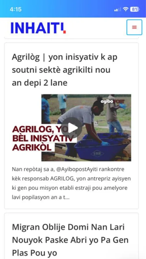 L'application InHaiti vous expose en temps réel à tout ce que disent les médias nationaux et internationaux sur Haïti. Cette application est une voix importante et indispensable pour les décideurs politiques, les touristes, les chercheurs et les citoyens ordinaires qui cherchent à mieux découvrir et comprendre Haïti.