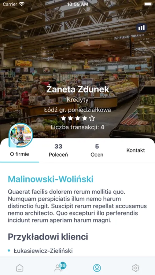W aplikacji możesz przekazywać polecenia, dziękować za wartościowe kontakty, a także aktualizować informacje o swojej firmie.