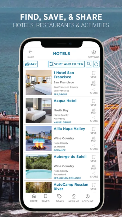 -The favoriting features means you can save hotels, restaurants, attractions, and deals to your Saved list for easy access later
