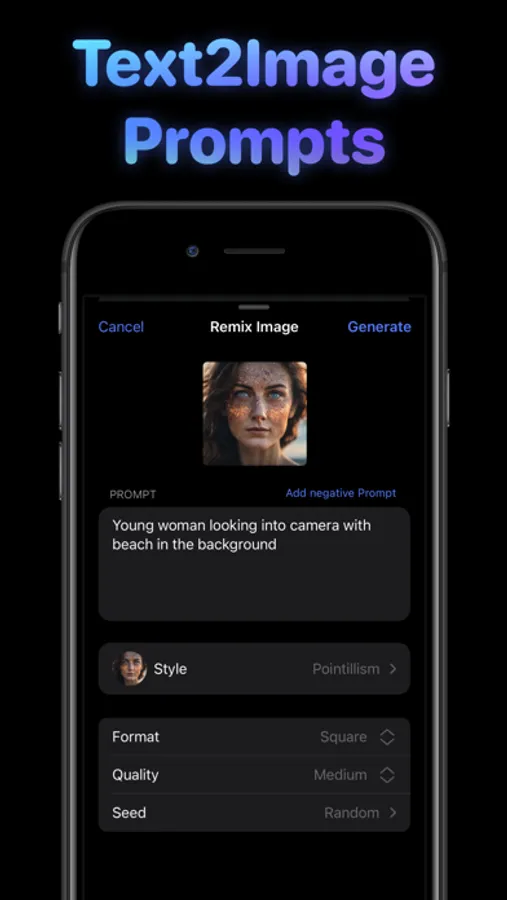 PixelWiz harnesses the latest Stable Diffusion XL 1.0 model to bring you a cutting-edge AI photo generation technology right into your pocket.
