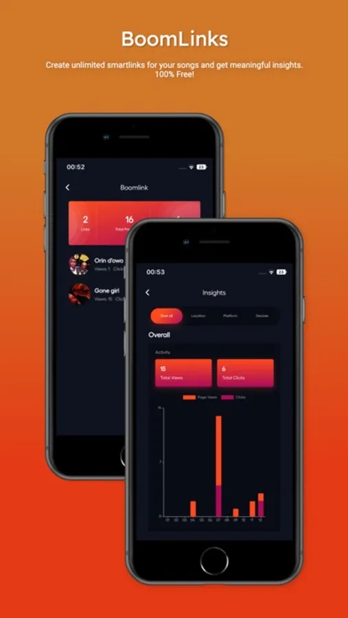 With our creative tools, you can design eye-catching cover art, generate music visualizer videos instantly, make unlimited Boomlinks, and use Boompage, a simple website that showcases your brand, music, videos and merchandise, making it easy for fans to find and connect with you.