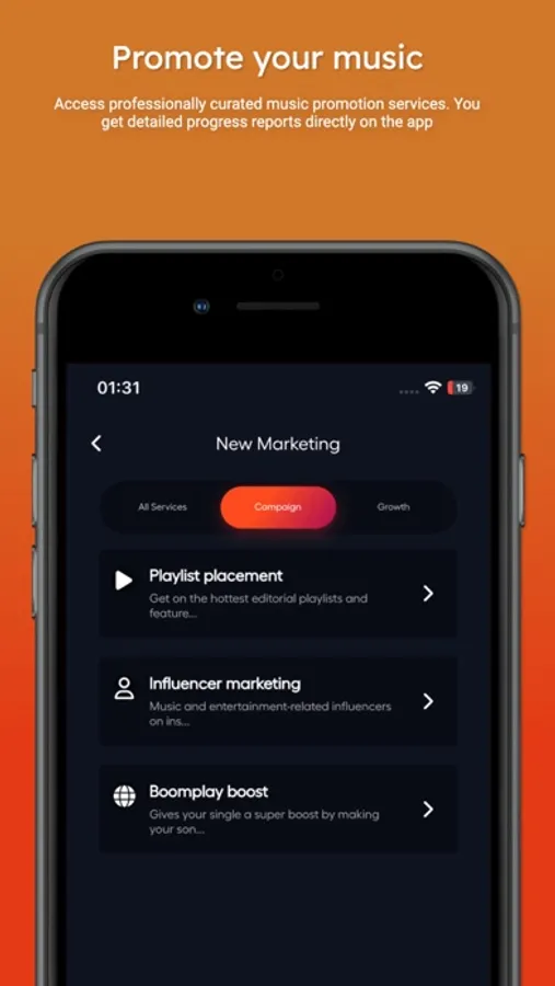 Select from our curated music promotion services or let our expert team create strategic plans to expand your audience. Receive detailed promotion reports directly in the app.